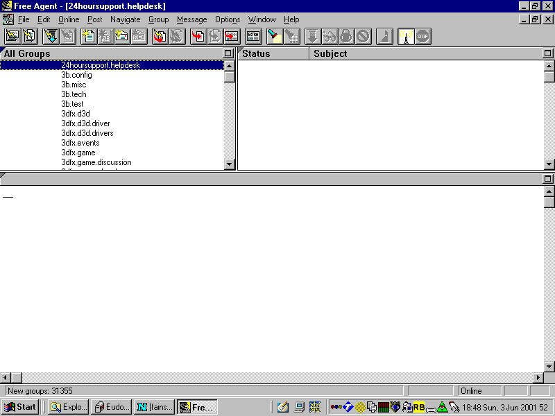 If you have got to this page then hopefully you will have already read my page on newsgroups here. If you haven't then I suggest that you read it now. Then the following will make more sense to you. Getting going with Free Agent is a fairly simple process. It is only three steps ;