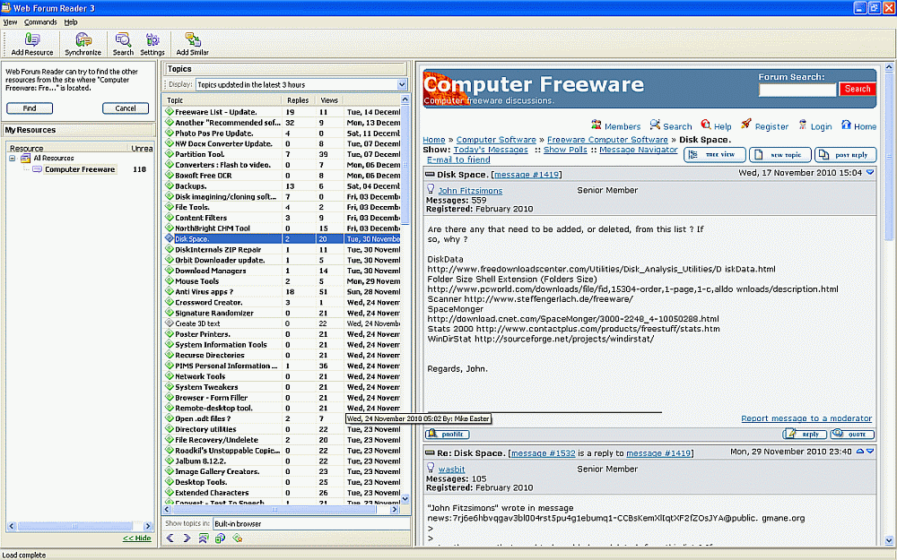 (3) Using a web forum reader such as the program "Web Forum Reader".